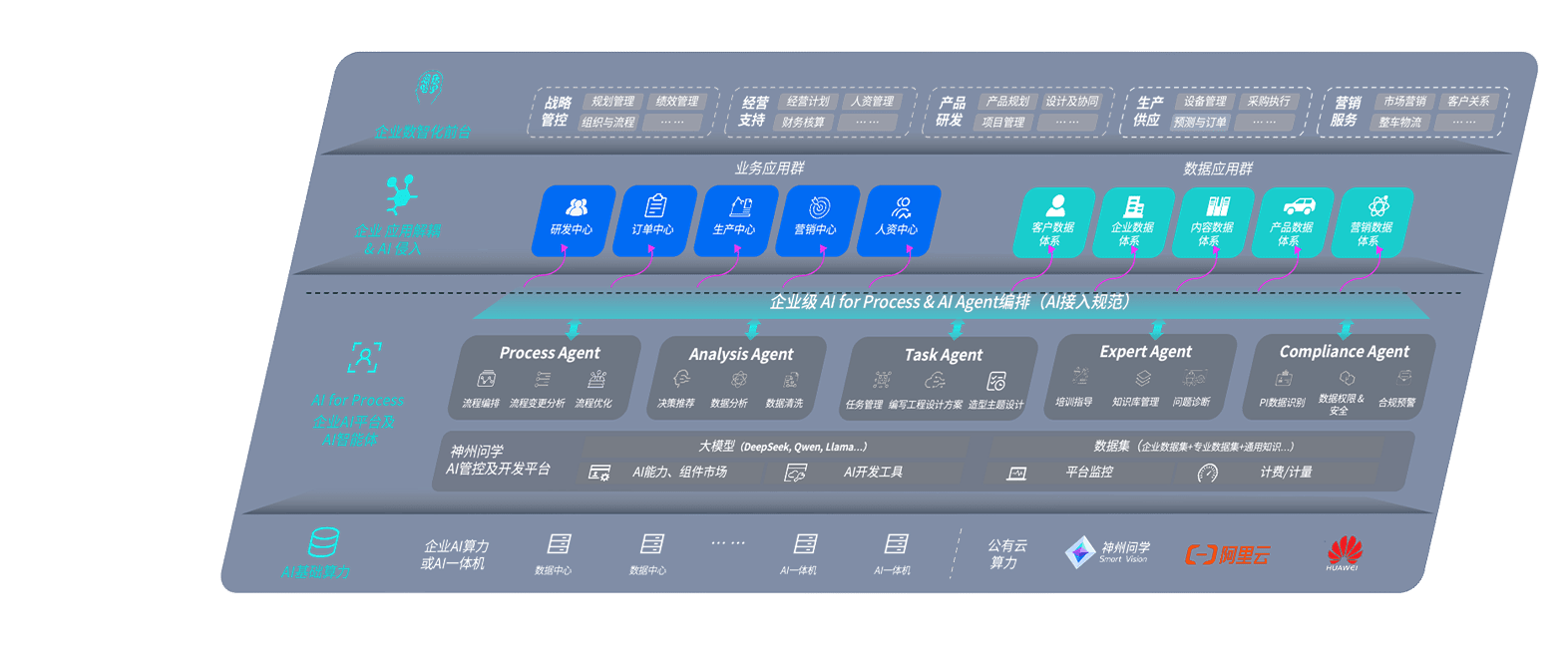 端到端的一站式AI工作空间深度融合了从企业战略规划到日常经营的全流程业务板块,,,定向解决车企内部领域多、、、部门多、、链条长、、场景碎片化等难题,,,,支持车企快速构建以AI为核心的生产力写作体系,,,,实现任务执行与AI能力的无缝集成与交互