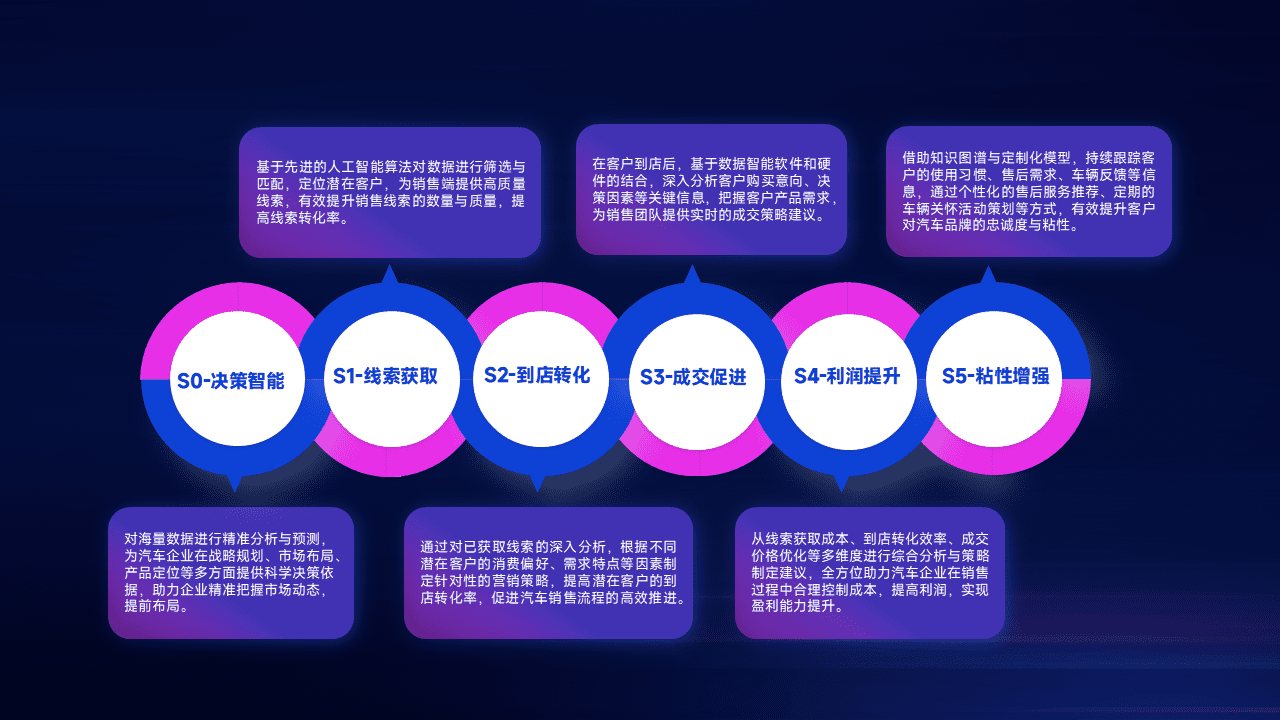 通过拓宽潜在客户来源、、优化线索分配并提高到店转化率,,以增强销售效率。。。。同时,,利用线索数据不断优化分析模型,,有效提升转化率,,,扩大营销影响力。。。。